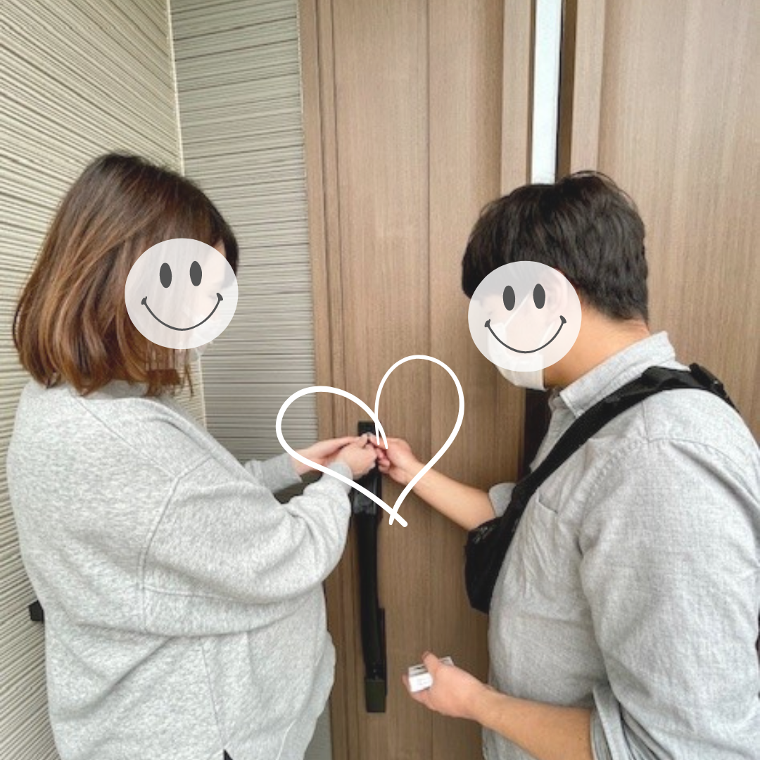 お二人で仲良く鍵の引き渡し♡