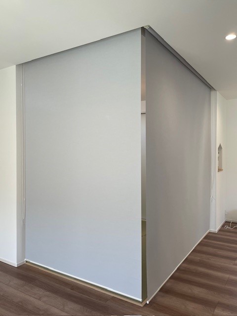 ロールスクリーンで仕切って個室として使用できるようにしました。